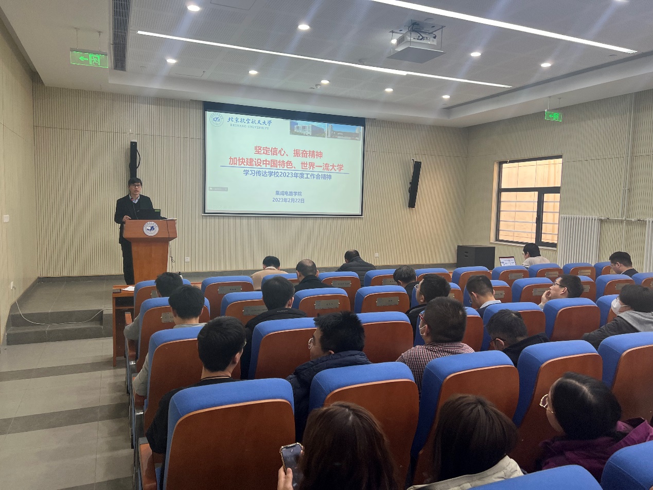 2月22日下午,集成电路学院召开2023年度工作会议,学习传达学校2023年度工作会精神,部署学院2023年度各项重点工作。全院教职工以及学生党支部书记等参会,会议由学院党委书记梁恩和主持。