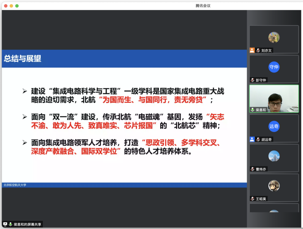 学院书记梁恩和老师对北航精神、北航“芯”精神进行了进一步的阐释,并从集成电路行业发展背景和现状、学院建设和发展情况、学生培养体系及培养目标等方面对学院进行了介绍,希望同学们勇于担当历史重任,将自己的奋斗融入国家的需要和时代的变革中。