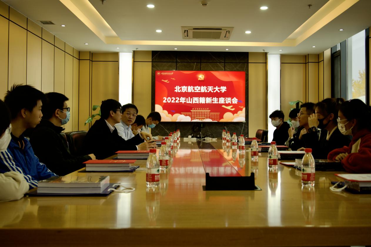 2022年11月9日下午,北航山西招生组在第一馆113会议室召开2022级新生座谈会。山西招生组组长、集成电路学院党委书记梁恩和,副书记马田,招生组成员代表,北航学院各书院、能源学院、物理学院、沈元学院、中法工程师学院、人工智能研究院的山西籍新生代表参加了会议。