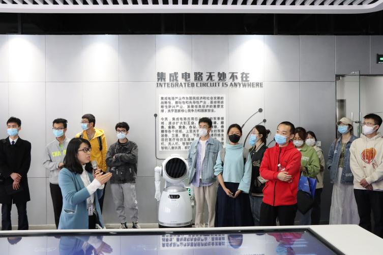 随后,学院师生在园区领导的带领下参观了中关村集成电路科技馆,进一步了解园区相关企业及发展成果,园区还面向集成电路设计产业配备了孵化服务平台,形成了十分完善的产业生态体系。同学们全面详细的了解了集成电路产业相关知识,从行业、企业、岗位等对集成电路设计行业有了全面清晰的认识。