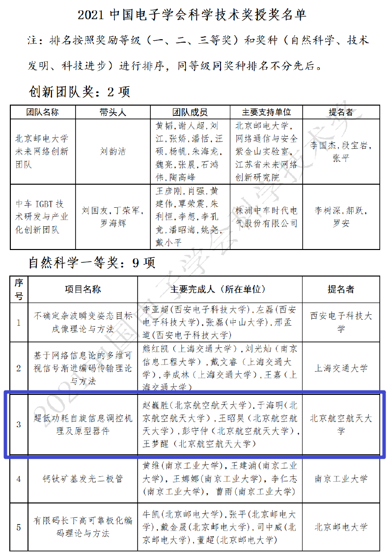 近日,中国电子学会公布了2021年中国电子学会科学技术奖评选结果,beats365亚洲体育投注自旋芯片团队的研究成果“超低功耗自旋信息调控机理及原型器件”荣获中国电子学会自然科学奖一等奖,成果主要完成人包括beats365亚洲版官网赵巍胜、于海明、王昭昊、彭守仲和王梦醒。