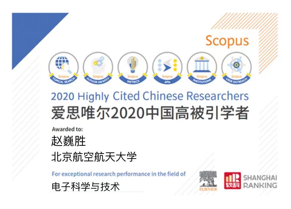 2021年4月22日,爱思唯尔(Elsevier) 重磅发布2020“中国高被引学者” (Highly Cited Chinese Researchers)榜单。2020年榜单beats365亚洲版官网共有42名学者入选,我院赵巍胜教授、王聪教授入选。