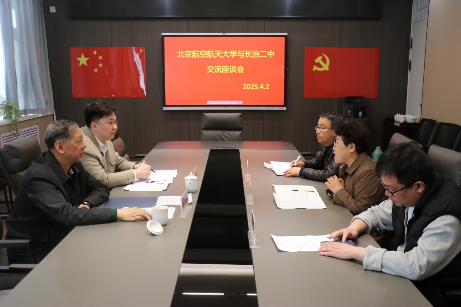 北航山西招生组与各中学领导围绕大中贯通合作模式展开深入对话,双方聚焦于创新人才培养的新路径,就共育时代所需的高素质人才、共享前沿教学资源以及共建协同育人机制等关键议题,进行了全面且富有成效的探讨。