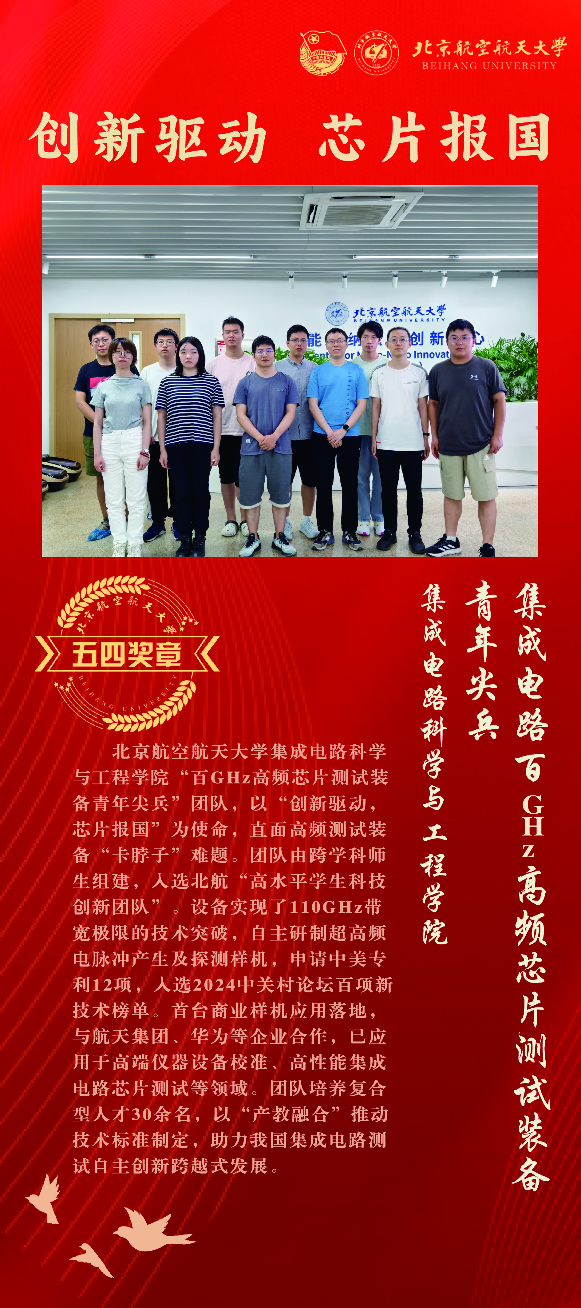 集成电路百GHz芯片测试系统青年尖兵由跨学科师生组成,成员平均年龄 29 岁,涵盖超高速电路设计、微纳加工、射频量测等多学科方向聚焦国家高频芯片测试系统难题。攻克170GHz测试技术壁垒,研制自主光电测试系统,打破国外垄断并入选《中关村百项新技术榜单》。