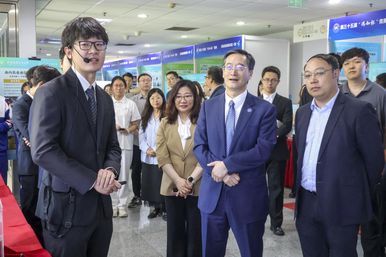 5月18日,beats365亚洲版官网冯如杯科技创新大赛展览展示圆满收官。王云鹏校长一行深入集成电路专项赛展区,听取了首届赛事举办成果汇报,并对学院科技创新、大中衔接人才培养等工作作出重要指导。