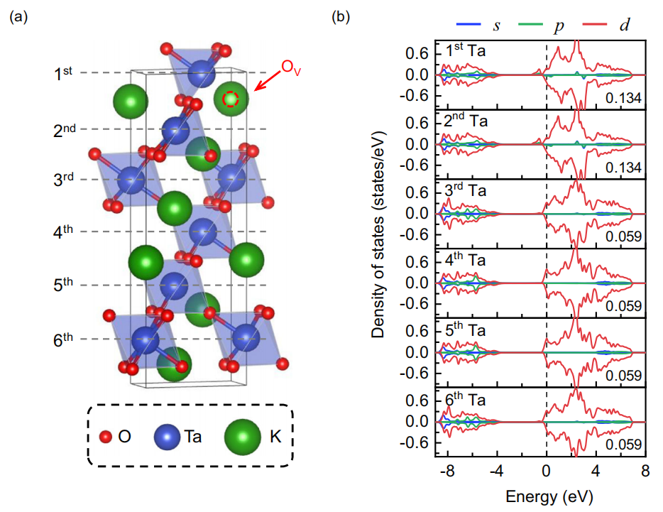 图3. 密度泛函理论计算的KTO(111)层结构模型及其轨道分辨的态密度