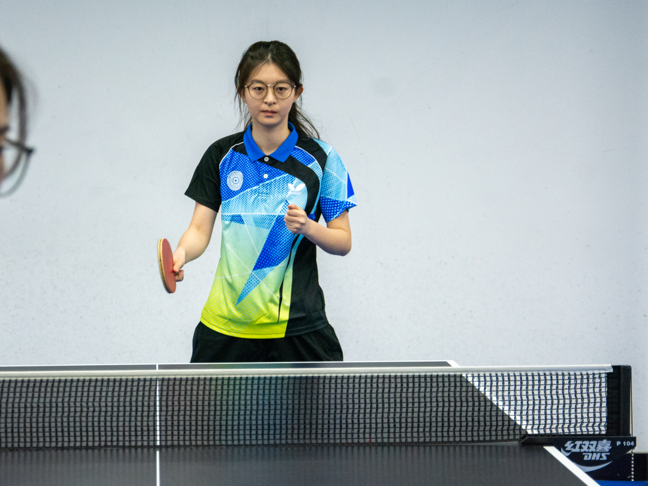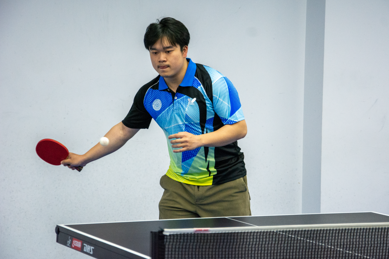 第三场尤为关键,队长王光燿同学肩负重任,面对擅于进攻的对方球员,他极具耐心地发球与搓球,凭借过硬的心理素质与绝佳的手感让对面屡屡失误,最终大比分2:0拿下关键一分。