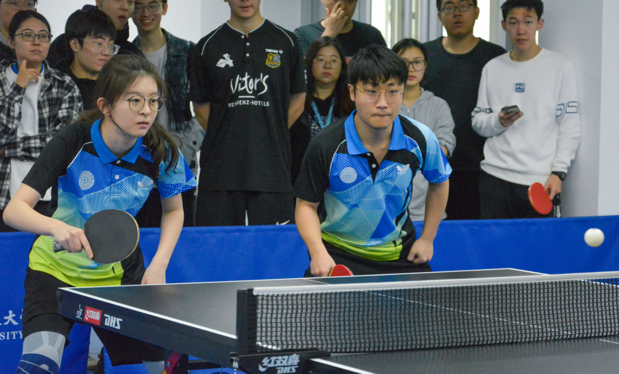 来到第四场赛点局的混双比赛,我方派出李文卓同学和刘芳竹同学的顶尖阵容,对方由实力强劲的男单一号坐镇。全队人员集思广益,不断进行调整,力求在每一个细节上做到最好,双方都战至最后一刻,最终以1:2惜败。