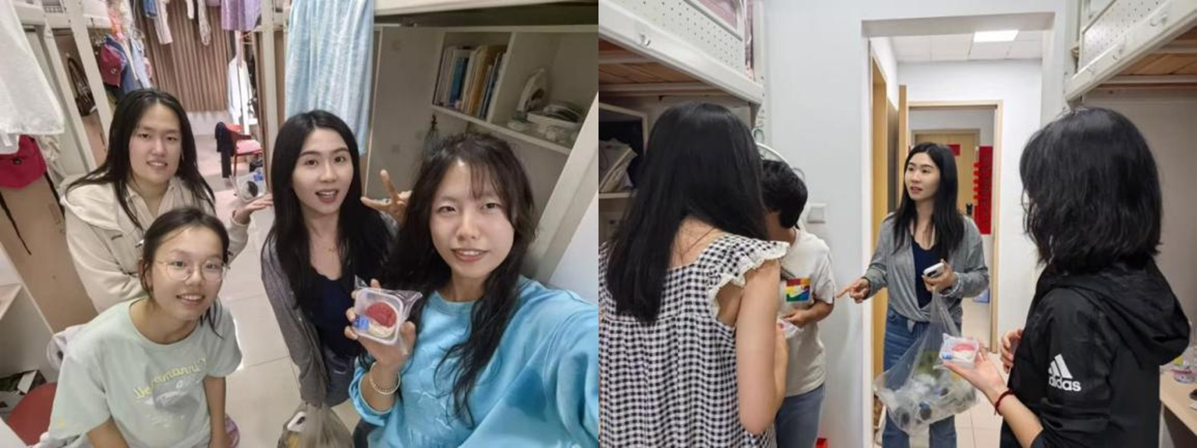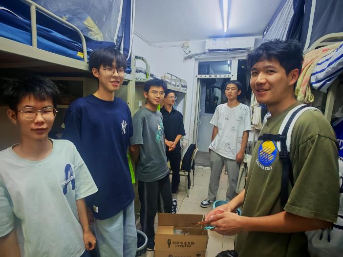 2025级本科新生由辅导员上门送月饼,在宿舍里交流入学适应情况,化解新生的陌生感,解答他们的困惑。