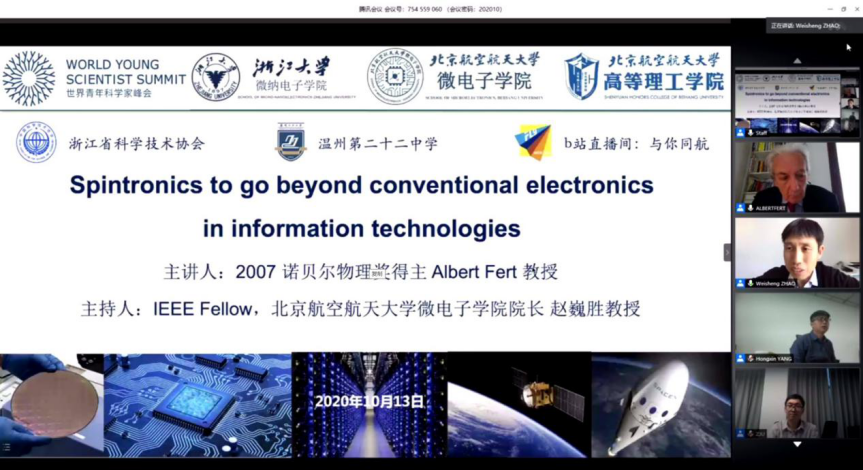 2020年10月13日,由beats365亚洲版官网微电子学院、高等理工学院、浙江大学微纳电子学院和世界青年科学家峰会等单位共同组织的诺奖得主费尔教授线上讲座成功举办。