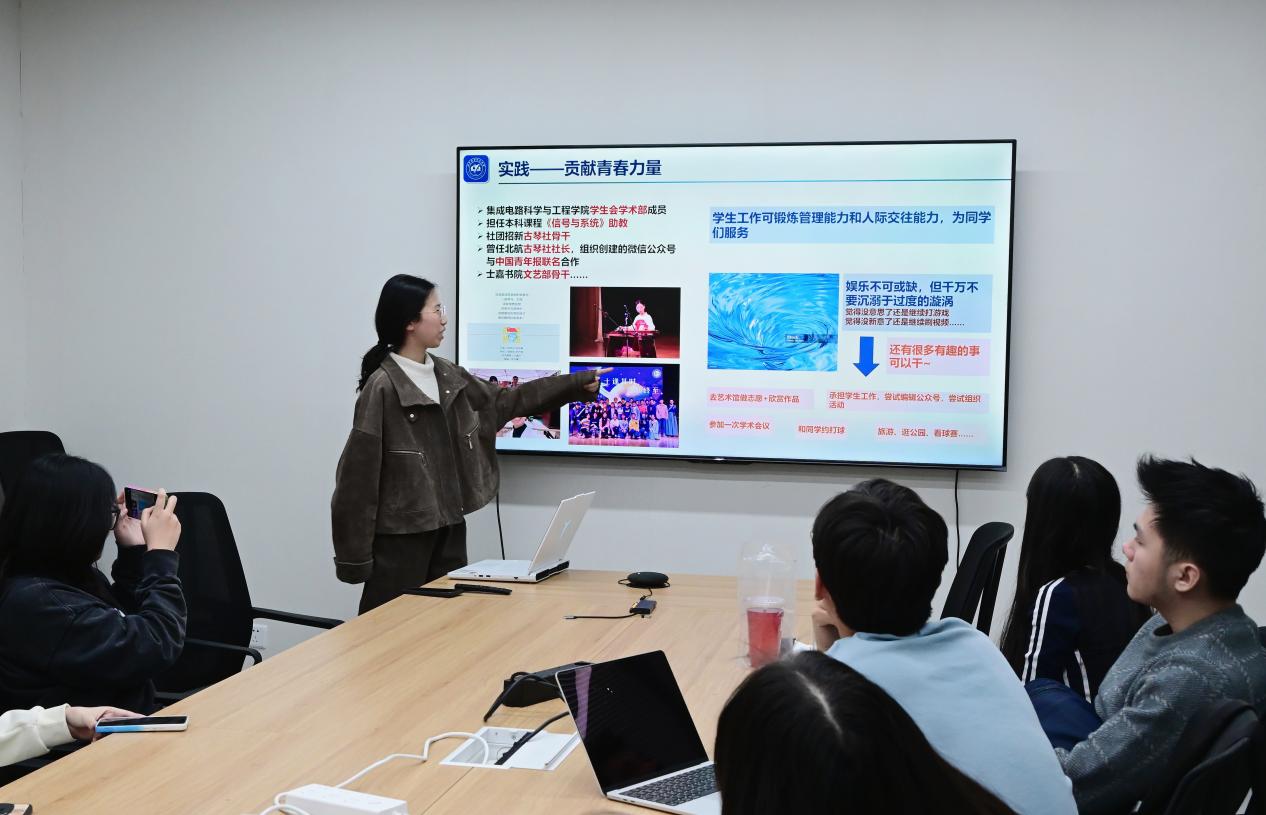 段欣睿在分享中谈到,参与学生工作与志愿服务不仅能服务他人、充实生活,还能锻炼自身管理和人际交往能力。